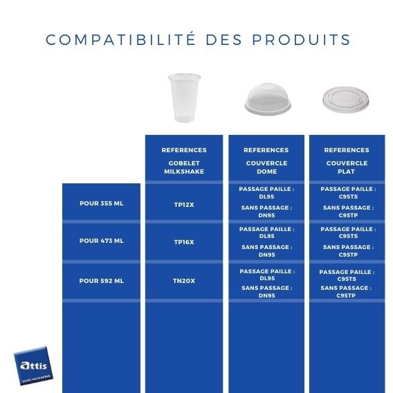 Le couvercle dôme est compatible avec le gobelet milkshake et le pot à dessert