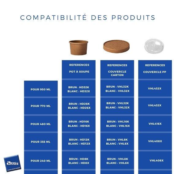 Le pot à soupe est compatible avec le couvercle PP et le couvercle carton.